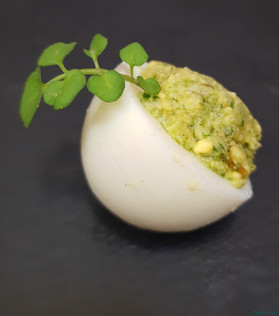 Siccome anche la resa è minima, ho provato a preparare un pesto con il quale ho riempito poi delle uova sode🥚